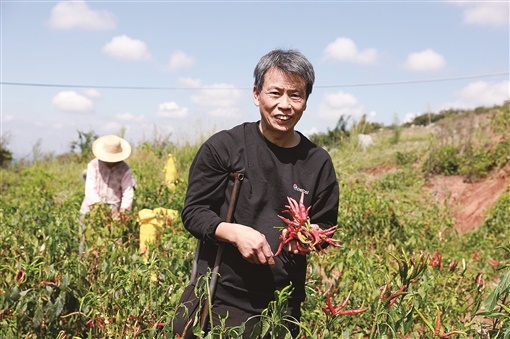 邓小冲幼时因一场意外事故导致右腿高位截肢,早年种辣椒收益低,销路差。近年来,当地政府推行企业+合作社+基地+农户的模式,实行订单农业,让他免去了“种出来卖不掉”的后顾之忧,年收入超过15万元,他还经营起了家庭农场,带动了更多村民增收致富。