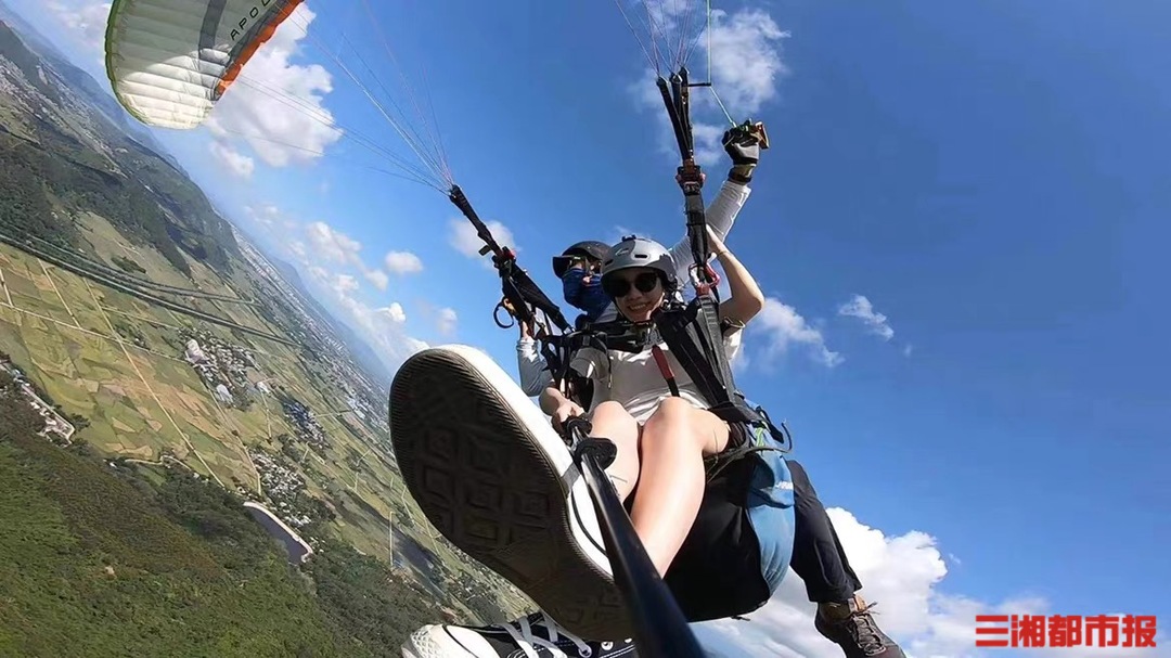 “俯瞰湘江水,远观长沙城景,山野、碧水、村庄等尽收眼底,在空中看什么都觉得,太美了。”游客胡娟告诉记者,这次来铜官窑乘坐滑翔伞,完全超出自己的预期。