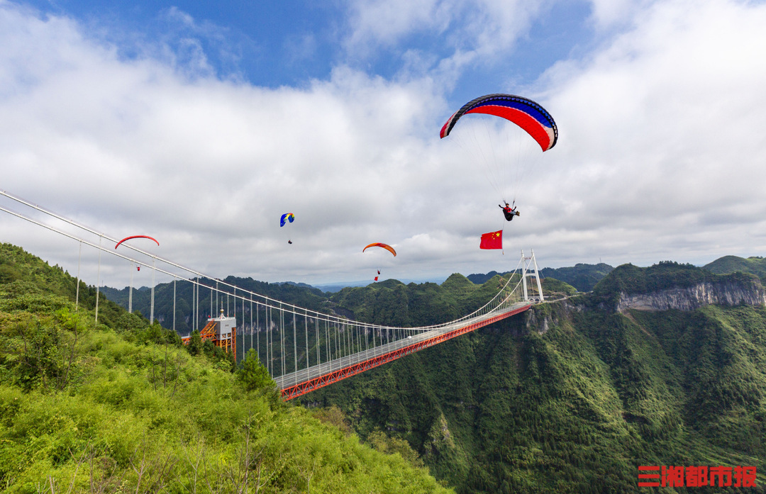 在矮寨奇观旅游区,游客刘思从滑翔伞上下来后兴奋不已:“这是我第一次体验滑翔伞,起飞前还胆战心惊。起飞后缓慢下降,就感觉自己在御剑飞行,实在是太棒了。”
