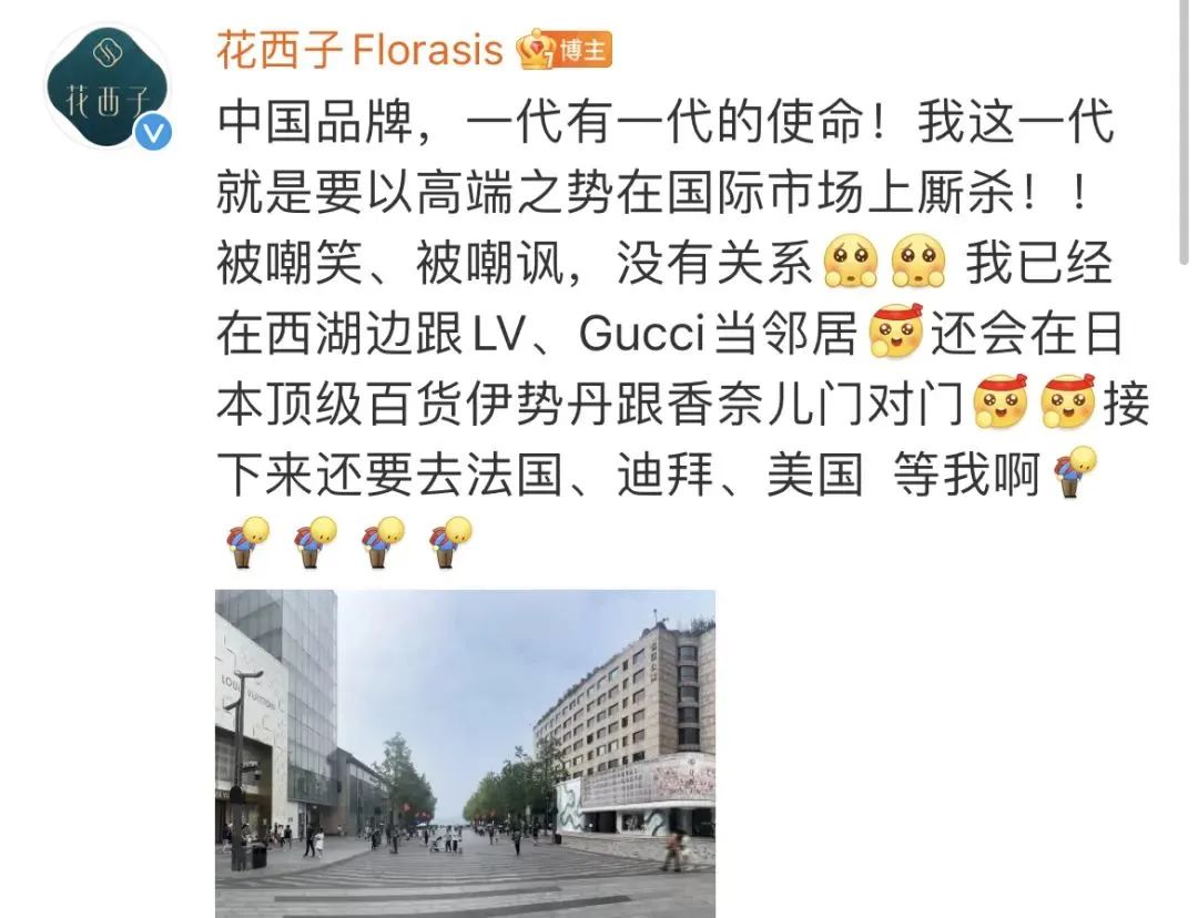 花西子:“中国品牌,一代有一代的使命!我这一代就是要以高端之势在国际市场上厮杀!!被嘲笑、被嘲讽,没有关系。我已经在西湖边跟LV、Gucci当邻居,还会在日本顶级百货伊势丹跟香奈儿门对门,接下来还要去法国、迪拜、美国,等我啊”。