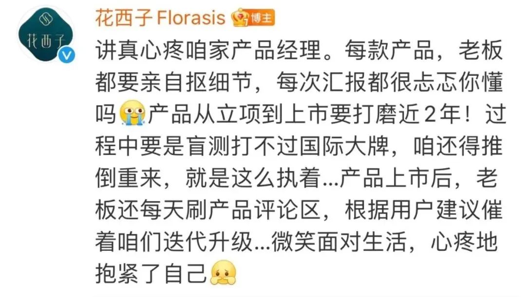 花西子:“心疼产品经理”“心疼地抱紧自己”