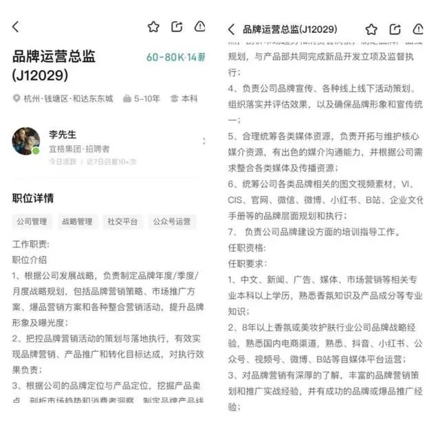 据九派新闻,21日上午,在招聘软件上虽然搜索不到宜格集团的“品牌传播专家”岗位,但能看到品牌运营总监岗位,月薪在60-80k,按14薪计算,年薪最高可达112万。