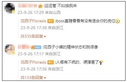 还有网友直接表示花西子是“发疯文学”,对此,花西子评论区回应网友表示,“人哪有不疯的,硬撑罢了”。