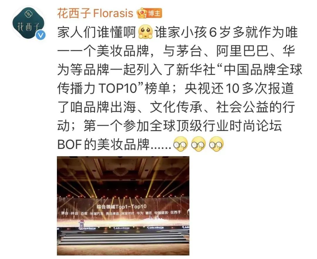 花西子:“6岁多就和茅台、阿里、华为并列”,被“央视和新华社多次报道”。