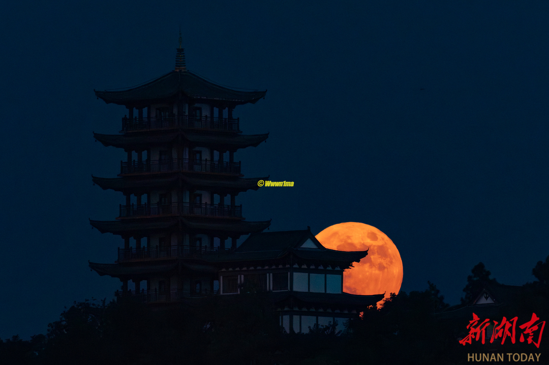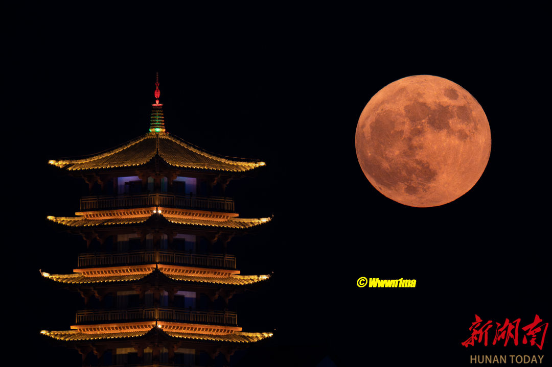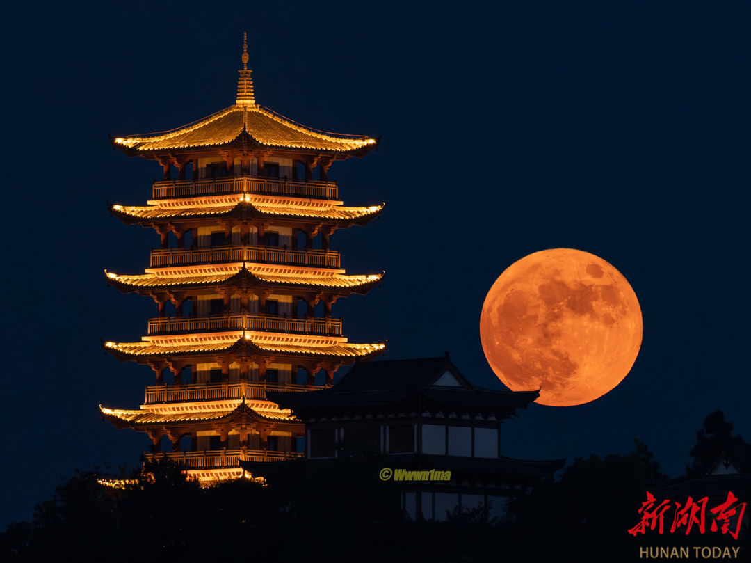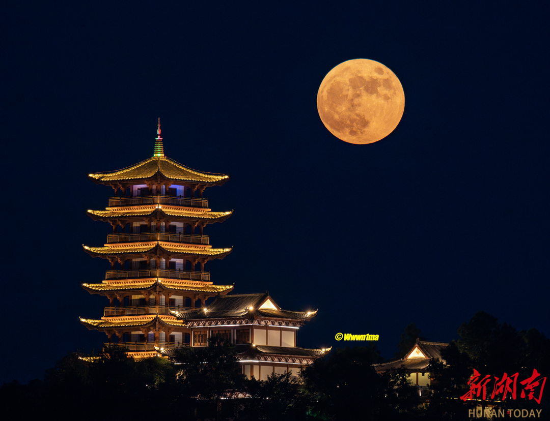 9月29日晚,永州市冷水滩区白石山公园成为市民中秋赏月的好去处,永州塔与背后的月亮交相辉映,美得无与伦比。(湖南日报·新湖南客户端通讯员 王钰坤 摄)