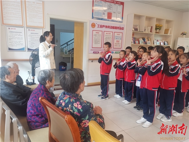 科教新报·新湖南客户电讯(通讯员 尹智慧)“您在这里住得舒服吗?”“您有几个儿女?我把电话给您,有什么需要,只管给我打电话。”10月15日上午,中共益阳市人民路小学党总支部书记兼校长郭超带领学校几位支部书记,部分党员教师以及三年级2105班的优秀少先队员来到资阳区金花坪社区的养老院,慰问、看望那些需要关怀帮助的老人。把一箱箱水果,一箱箱零食以及日常用品,送到这些老人的手里,老人深表感谢,紧紧握着郭超校长的手。