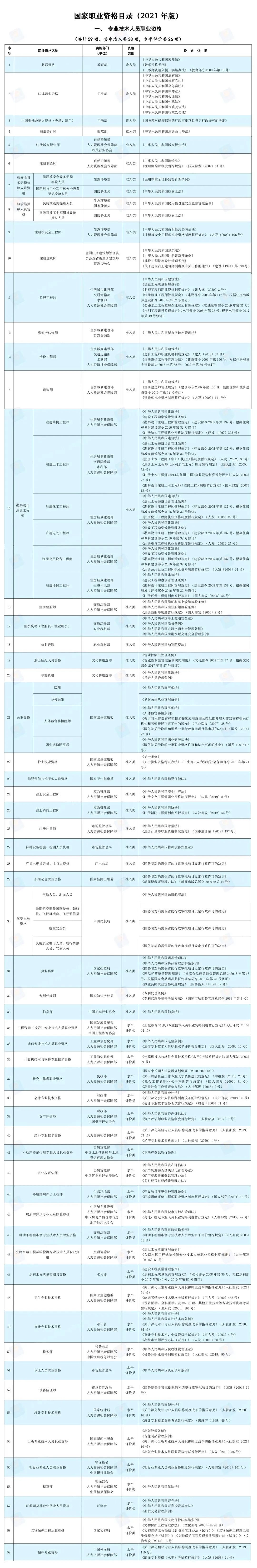按照国家职业资格目录,准入类专业技术人员职业资格有33项,准入类技能人员职业资格有13项。