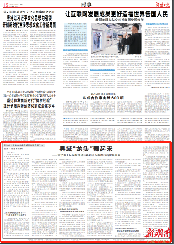 一个个“首家”“率先”“较早”,筑起了常宁市综合性医院医疗服务水平的高地。目前,常宁市5G智慧急诊急救体系中心,心电、B超、DR远程会诊中心又在常宁市人民医院启动建设,标志着常宁县域内医疗检测同质化大大提升,乡镇卫生院检测水平提高。这个县级“龙头”,将以新探索、新作为推动全市医疗事业迈向新天地。