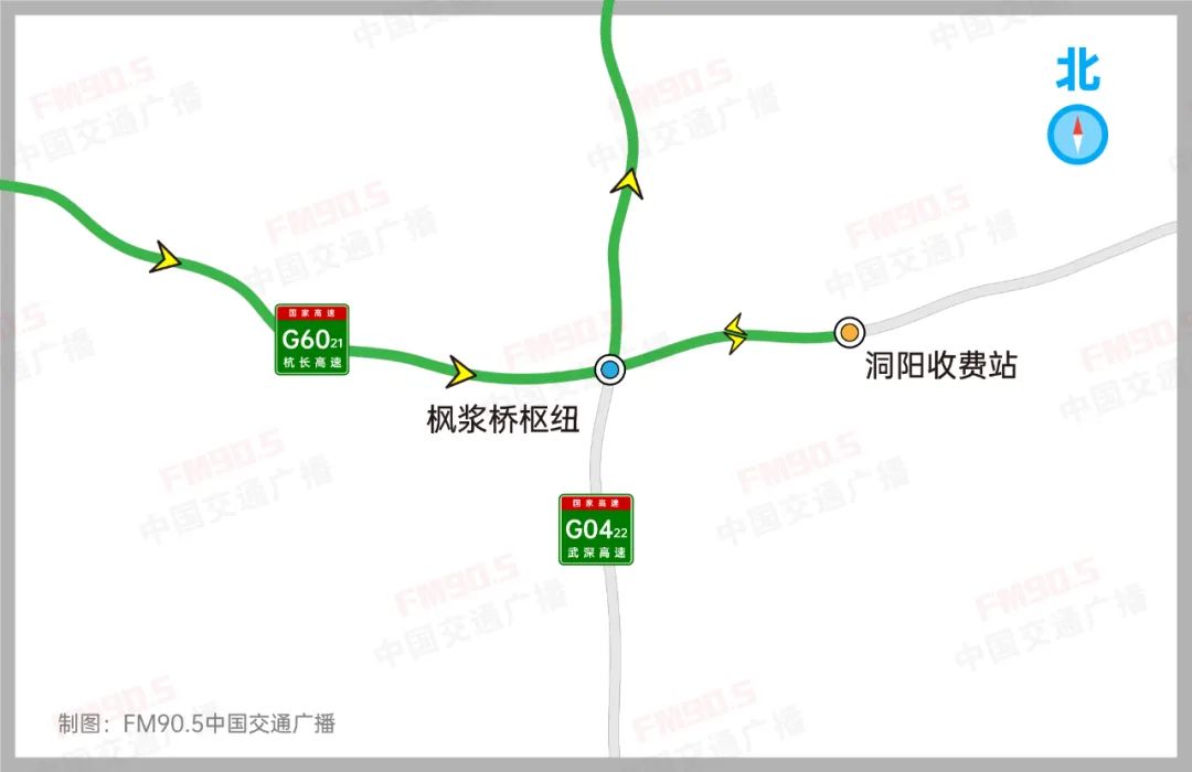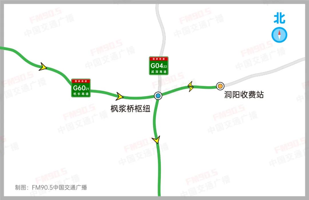 建议各位驾驶员沿着G6021杭长高速西往东方向行驶至洞阳收费站掉头往长沙方向,至枫浆桥枢纽再转G0422武深高速北上。