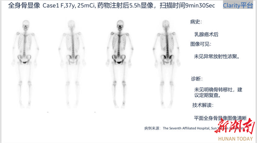 与老款SPECT相比,光子发射断层及X射线计算机体层摄影成像系统 (SPECT/CT)扫描时间由原来20多分钟缩短到现在9分钟。