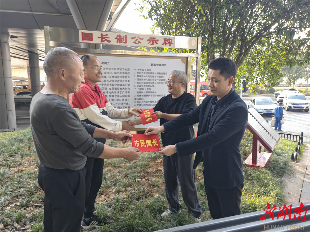 11月23日,芦淞区城管局副局长熊仁俊、区园林绿化中心主任阳志在乐水园亲手将专职园长、市民园长的标识袖套送到专职园长易国强、市民园长杨再明手中,以此揭开芦淞区微公园园长制开始试点运行的序幕。