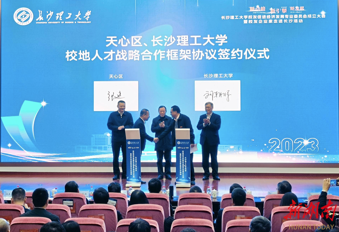 天心区、长沙理工大学校地人才战略合作框架协议签约现场。