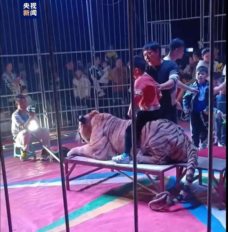 12月9日,央视记者从百色市田东县文化体育广电和旅游局了解到,经调查,涉事马戏团在未经批准的情况下,擅自于12月6日晚开始在田东县恒力广场市场东门演出,并收费允许儿童骑老虎背上合影。