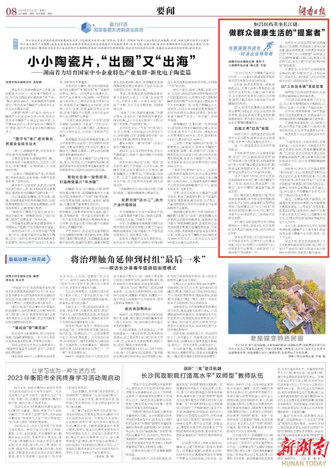 通过工业制造实现产品领先,在流通环节做到成本领先,在终端零售实现服务领先,“三驾马车”并驾齐驱,恒昌医药得以逆势疾行,2022年实现主营业务收入近30亿元,纳税额2.32亿元。江琎获得首届“新湖南贡献奖先进个人”称号。