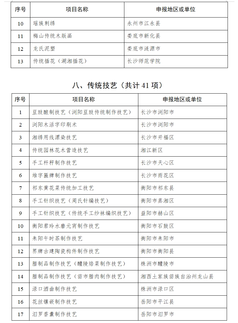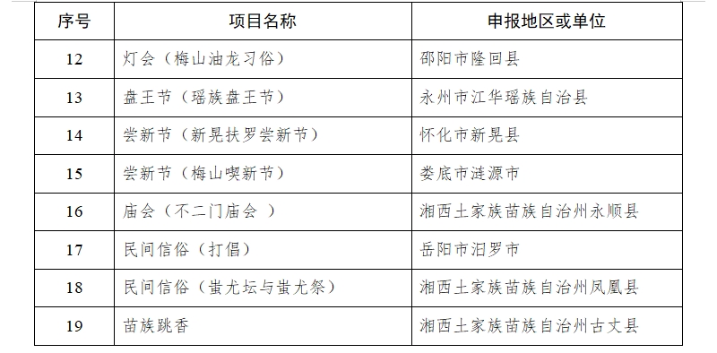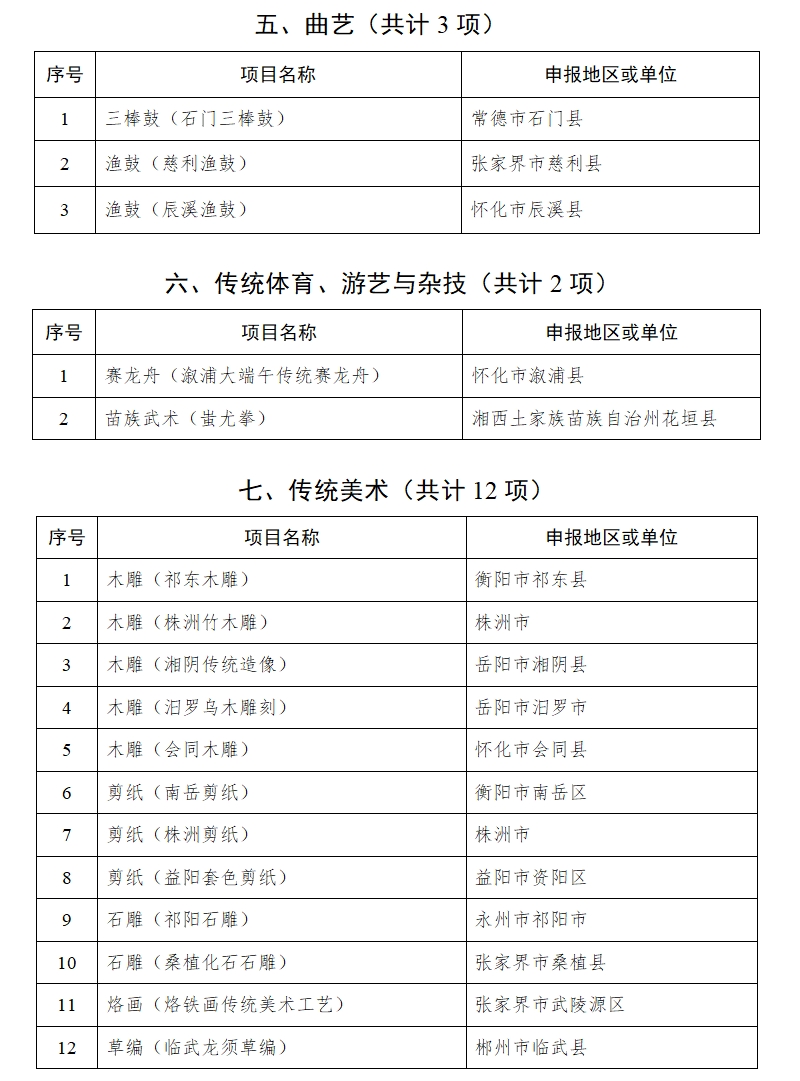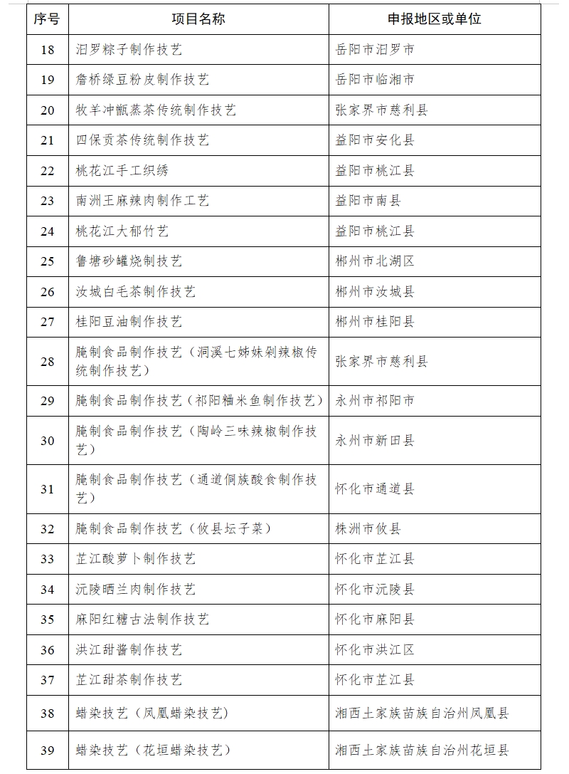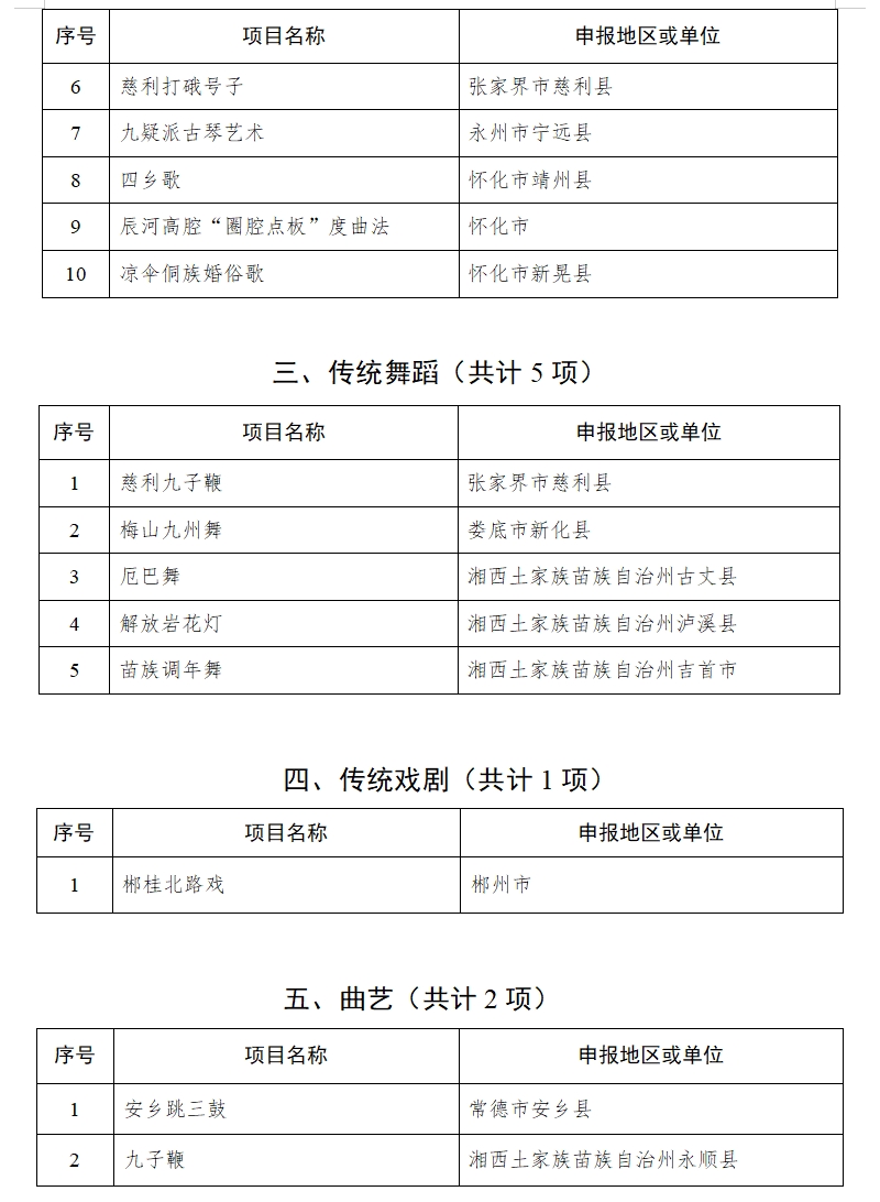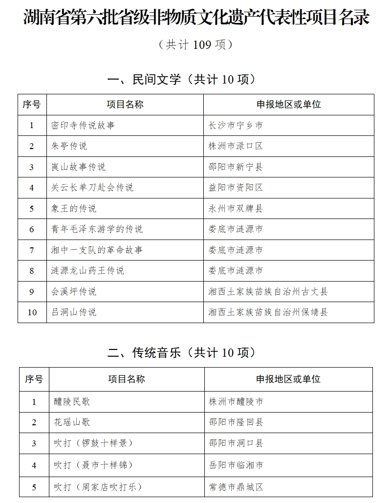 湖南省人民政府关于公布第六批省级非物质文化遗产代表性项目名录的通知
