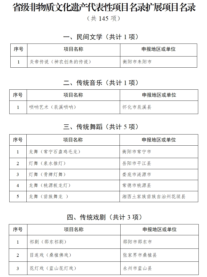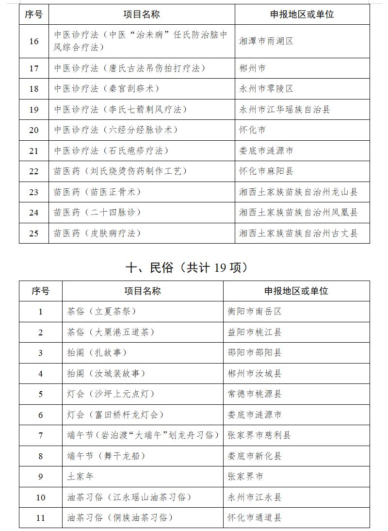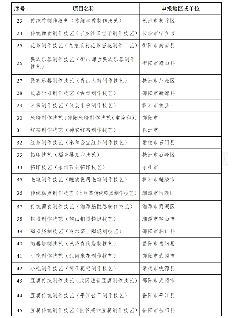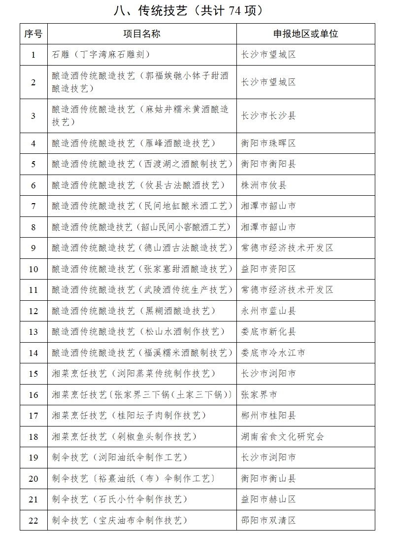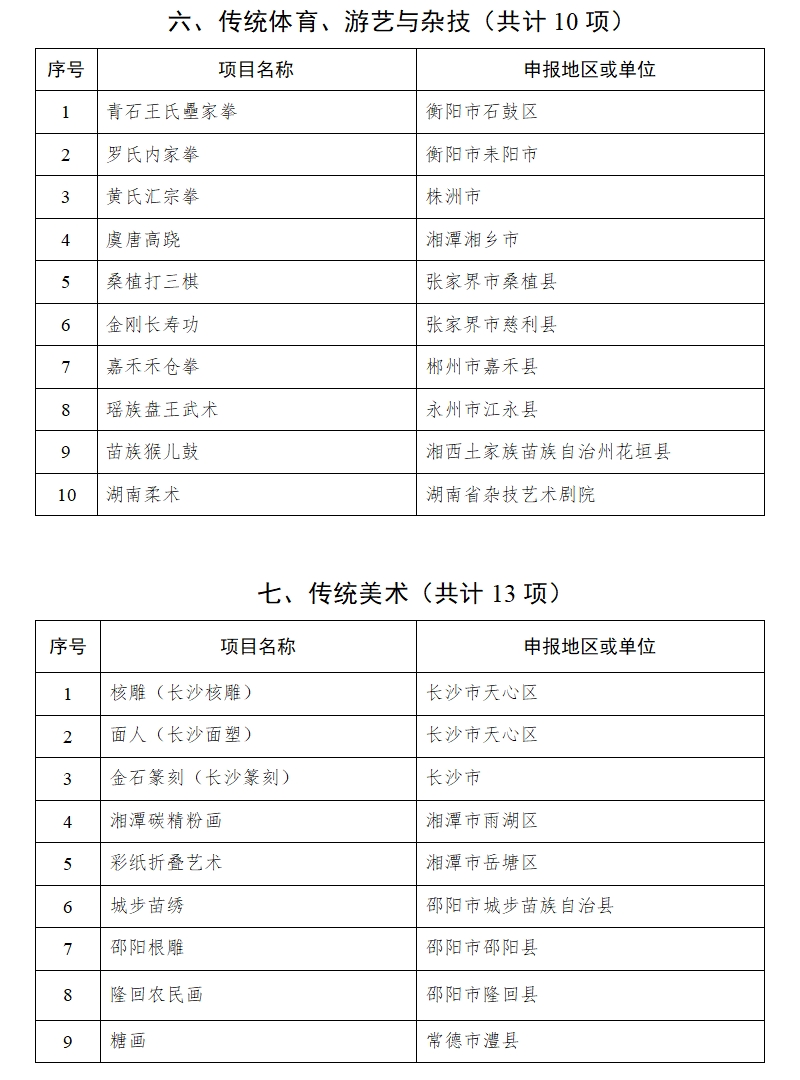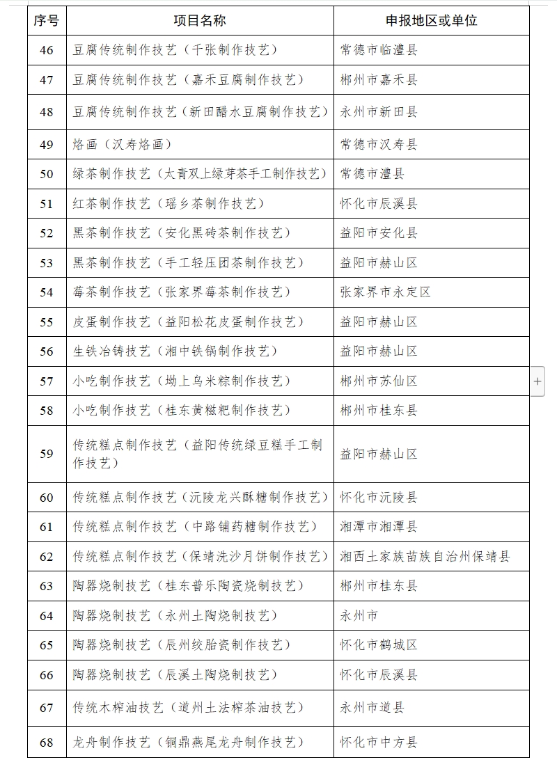 湖南省人民政府关于公布第六批省级非物质文化遗产代表性项目名录的通知