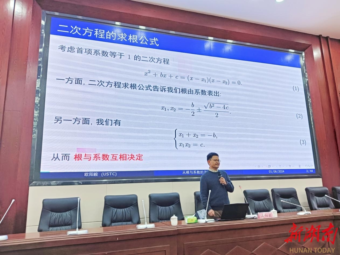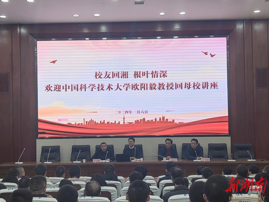 科教新报·新湖南客户端讯(通讯员 邓小臣 欧阳向前)1月6日,中国科学技术大学数学科学学院欧阳毅教授回到母校衡阳县一中,开展“校友回湘,根叶情深”主题讲座。衡阳县教育局党组书记、局长刘炳辉,县教研室主任刘传经出席会议,各县属高中相关负责人、师生代表300余人参加。县一中校长朱顺利主持活动。