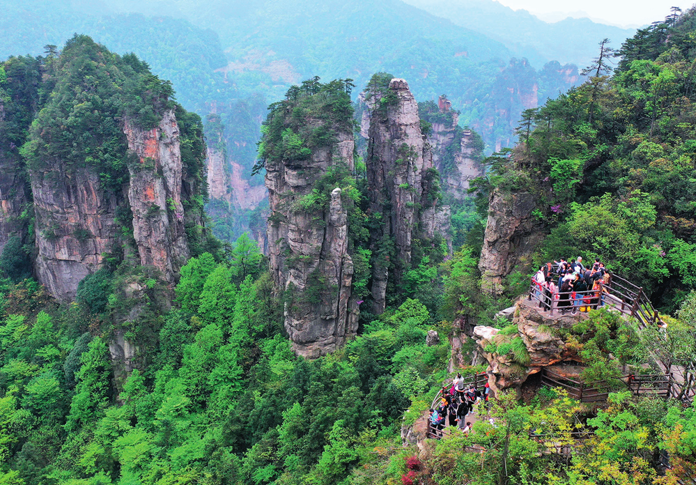 游客在湖南省张家界国家森林公园黄石寨游玩(2023 年 4 月 29 日摄) 吴勇兵摄 / 本刊