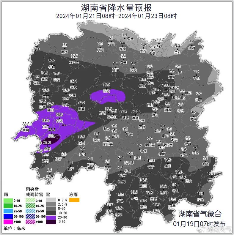 一是重点防范21日至22日大范围降雪及持续低温造成的道路结冰、积雪及低能见度对交通出行安全的不利影响,湘西、湘南山区注意防范冻雨对电力、通讯线路等设施的影响。