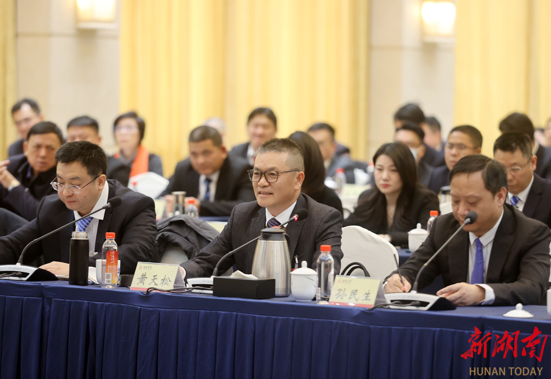1月24日下午,许国勇委员(左二)在分组审议时围绕民营企业家如何在我省“三高四新”建设中发挥积极作用建言献策。 湖南日报全媒体记者 赵持 摄