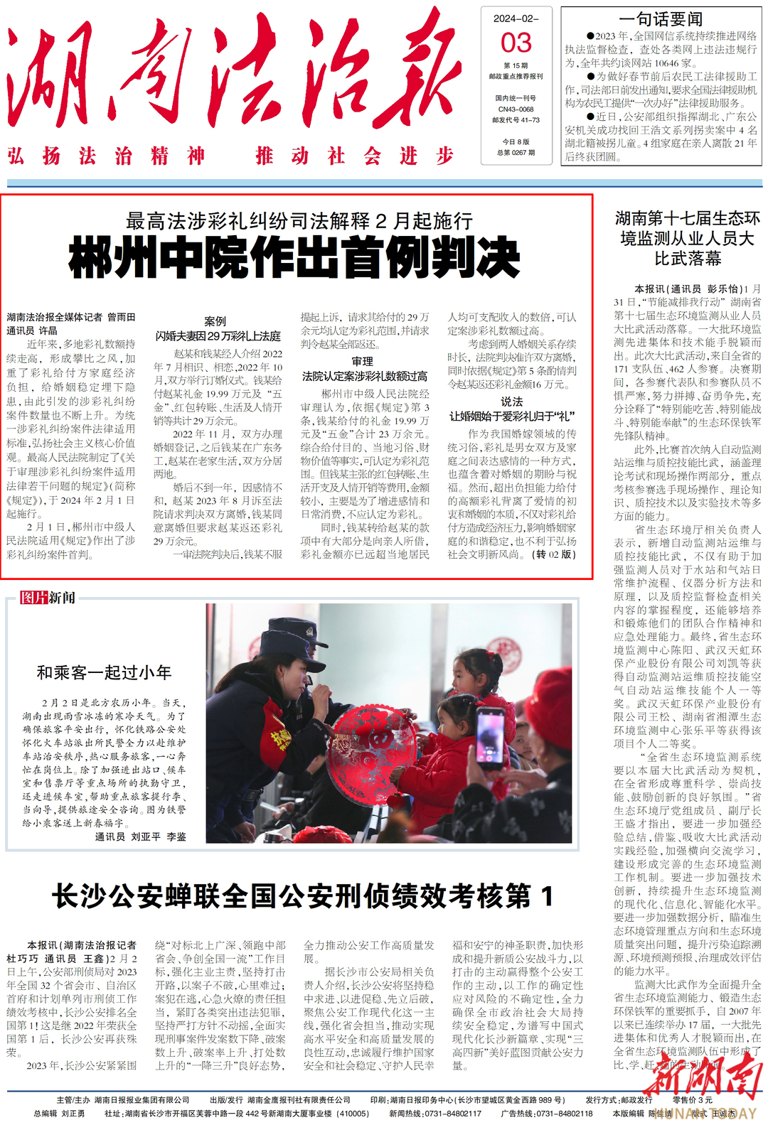 2月1日,郴州市中级人民法院适用《规定》作出了涉彩礼纠纷案件首判。