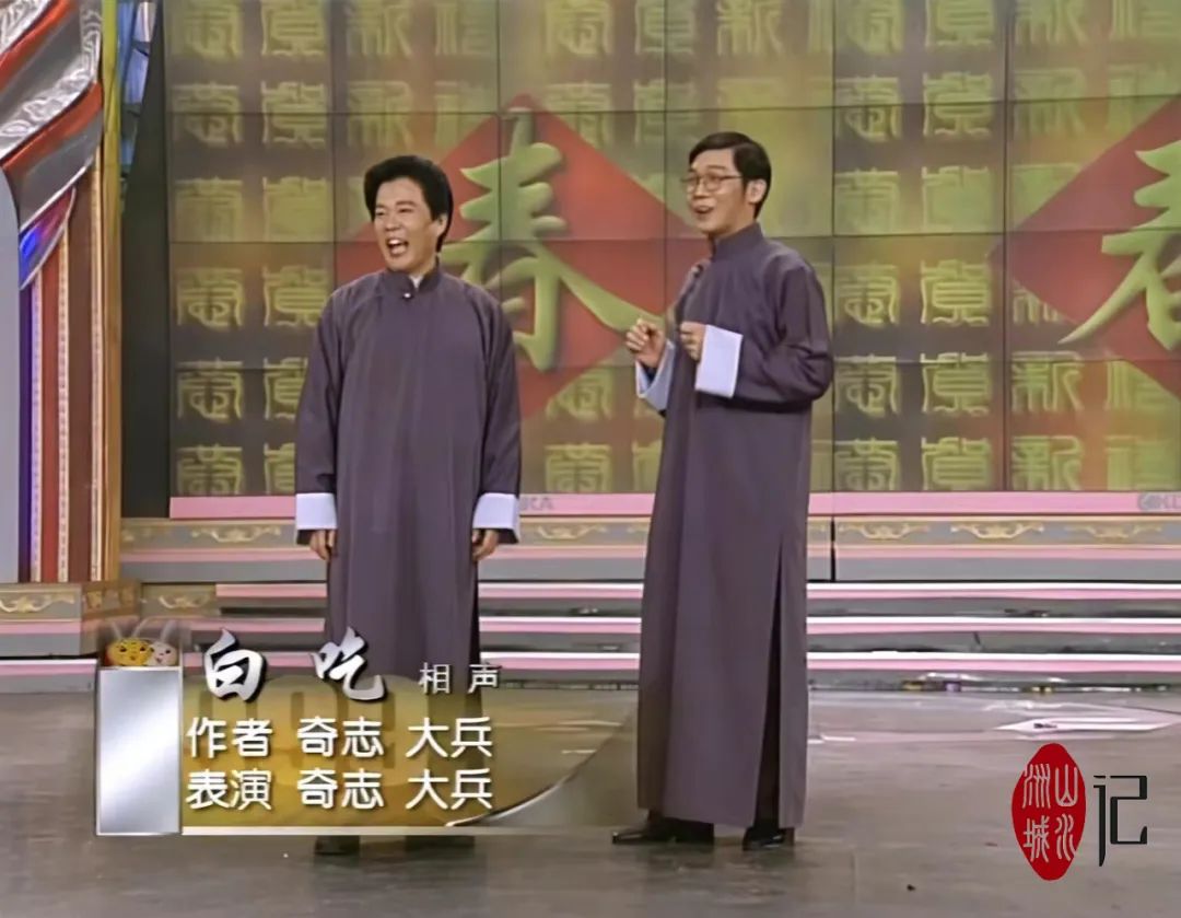 两人作为南派相声的代表,曾多次冲击春晚。1999年,已经在省内火得“一塌糊涂”的两人携相声《白吃》首登春晚,迈出了在全国打响名气的重要一步。彼时,相声这种曲艺形式已经渐渐让出了喜剧老大的宝座,春晚上越来越多的喜剧节目是小品。正是在这种背景下,他们这部讽刺不良风气的作品历经大浪淘沙,仍然给多年后的观众留下了深刻印象,被评价为与马季的《宇宙香烟》、姜昆的《虎口遐想》等齐名的春晚经典。