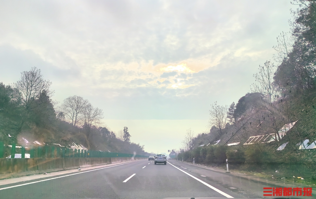 “前半段路面还有点潮湿,越往南走路面越干,越往前开阳光越大。”丁先生开心地说,原本做好了堵车准备,还带了好多吃的,结果很顺畅,他们带着两个小朋友,走走停停,也只花了4个小时就到了邵阳南。“快到到家时还出太阳了,离家越近太阳越大。不仅一家人团聚,还有久违的太阳相迎,真是让人身心愉悦”。