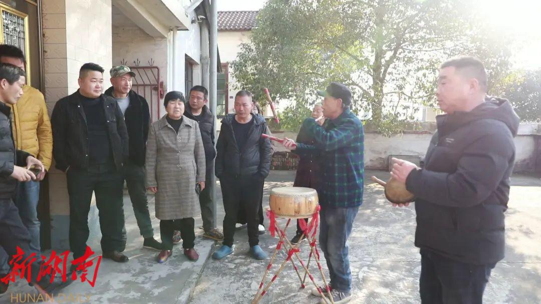 2月12日,农历正月初三。在汉寿县坡头镇联兴村、福禄村等地,高少红等民间艺人走村串户表演三棒鼓,为村民们送上新春文化大餐。