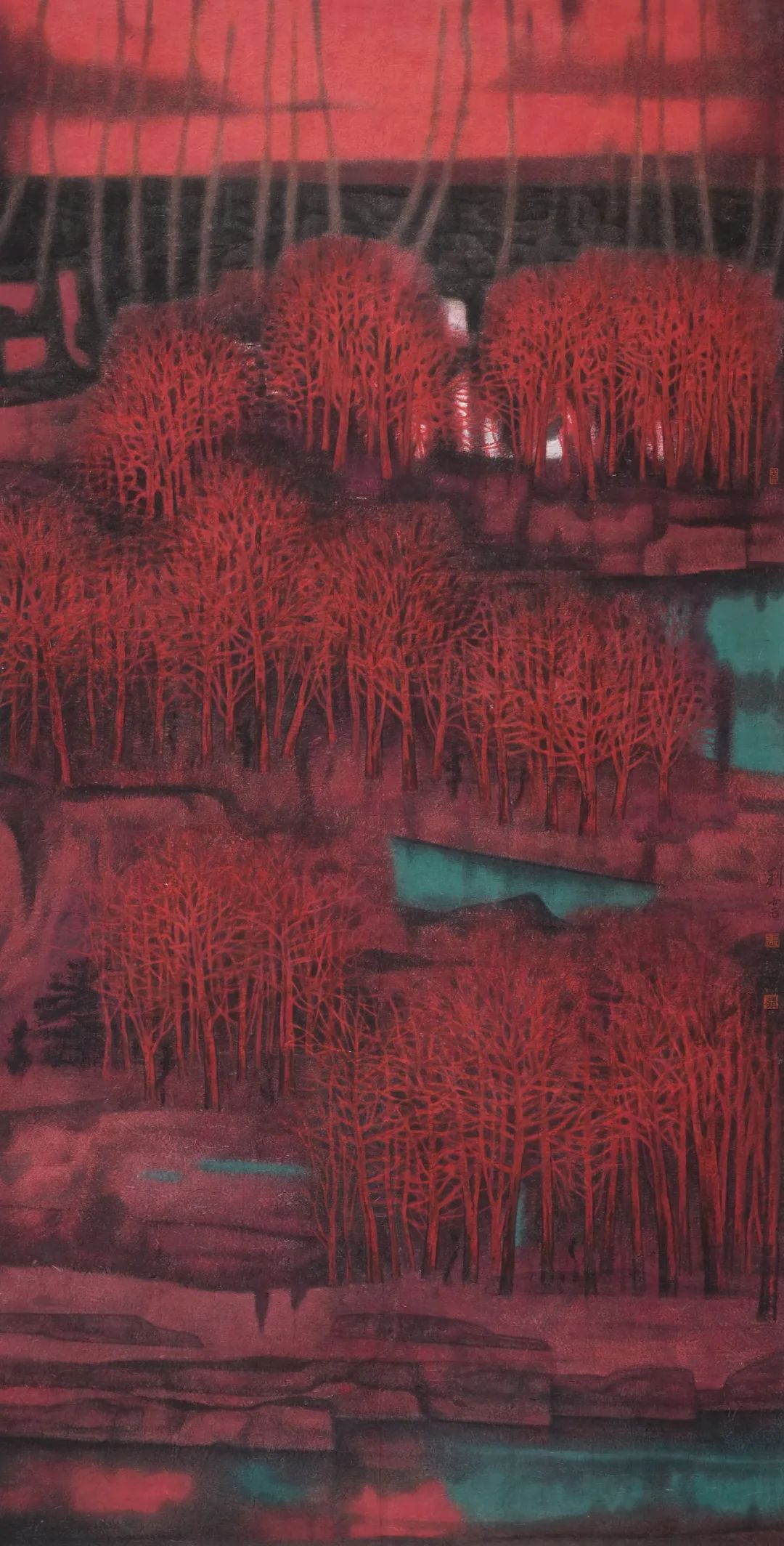 “色彩”,是刘云作品的基调气质,它温润而厚重,强烈又交融。一方面把水墨与颜色混合起来,在相得益彰中创造了独立而丰富的色彩系统;一方面又提示我们重新从当代的观念去定义水和墨的关系,在追求视觉性的完美体现中,将颜色系统更新为气氛美学的营造、情绪共情的唤起甚至是艺术疗愈的体验。