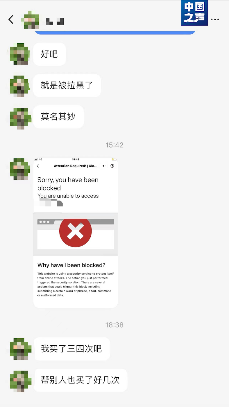 杨先生讲述被“拉黑”情况(社交平台截图)