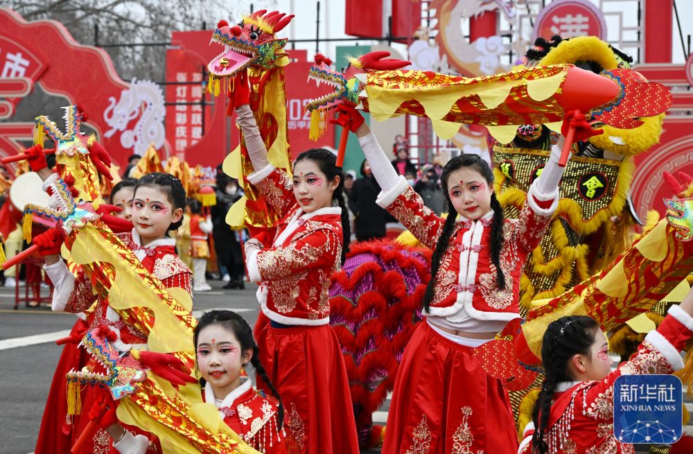 ↑2月24日,来自北京市平谷区的群众在北京市平谷区举办的“欢乐京津冀 一起向未来”2024秧歌花会展演活动中表演节目。来自京津冀三地2000余名群众参加该活动。新华社记者 任超 摄