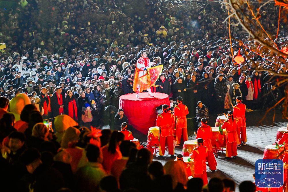 ↑2月23日,当地居民在内蒙古乌兰察布市卓资县广场上参加民俗活动。新华社记者 刘磊 摄