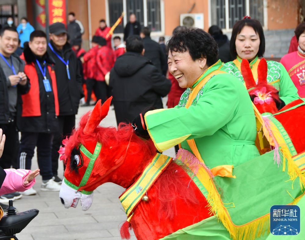 ↑2月23日,在河北省邯郸市永年区临洺关镇,民间艺人表演“跑驴”。新华社发(胡高雷摄)