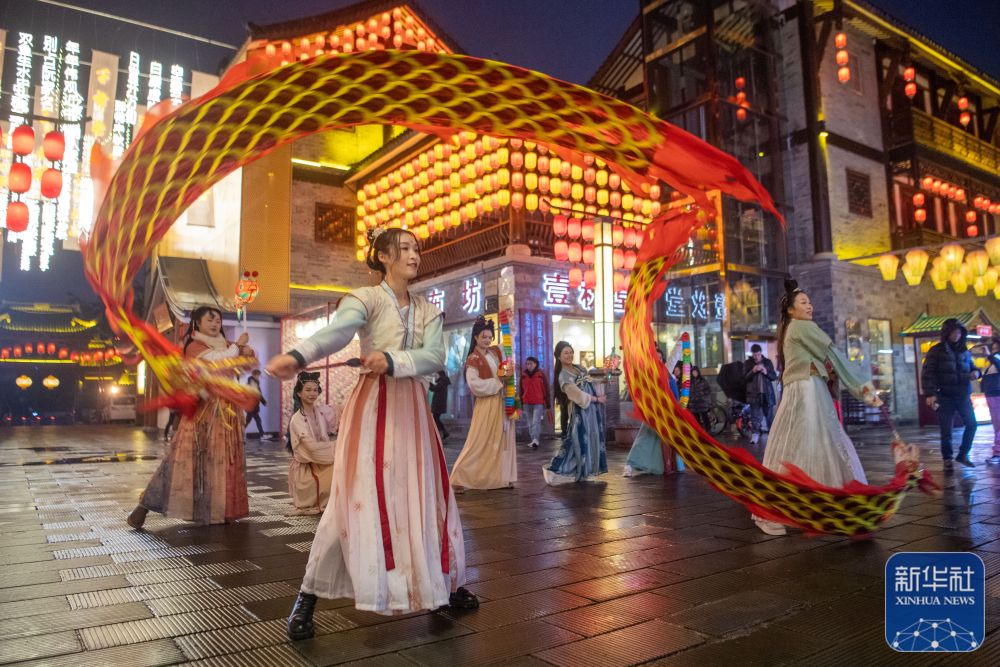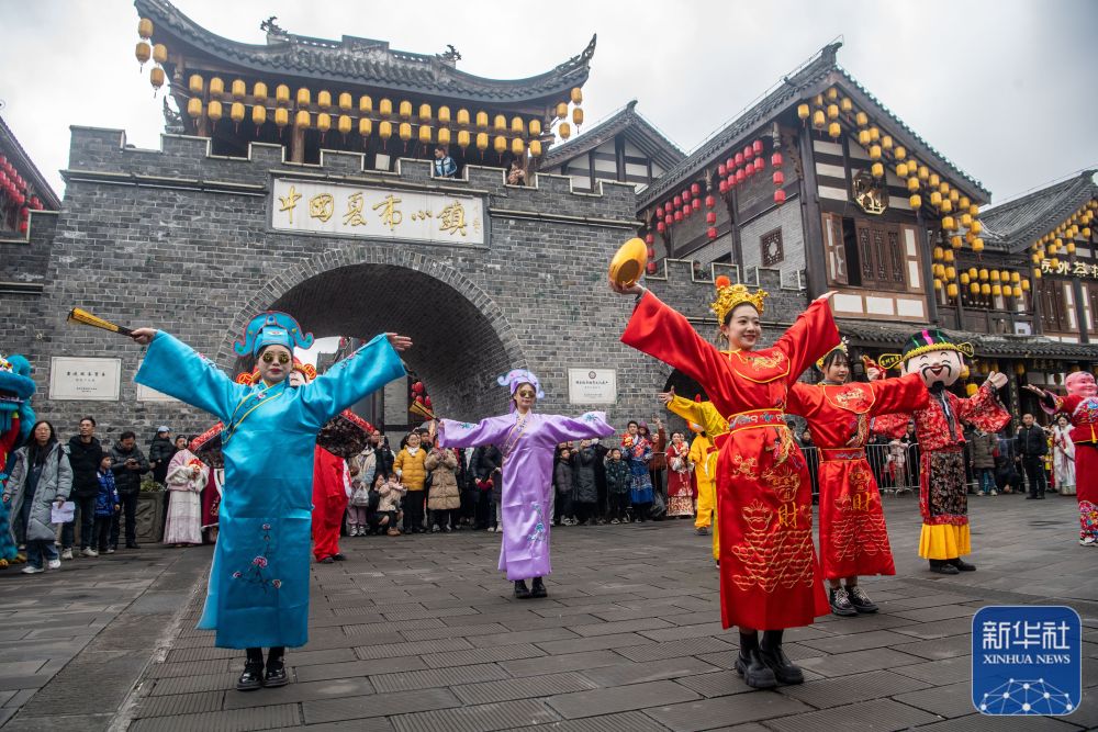 ↑2月24日,表演者们在重庆市荣昌区夏布小镇“千年荣昌 喜乐元宵”2024年系列元宵节民俗文化活动上表演节目。新华社记者 唐奕 摄