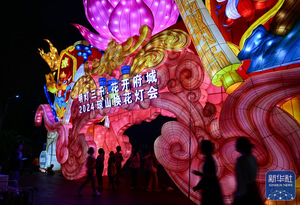 ↑2月23日,在海南省海口市美舍河凤翔湿地公园,游客参观2024琼山换花灯会。新华社记者 蒲晓旭 摄