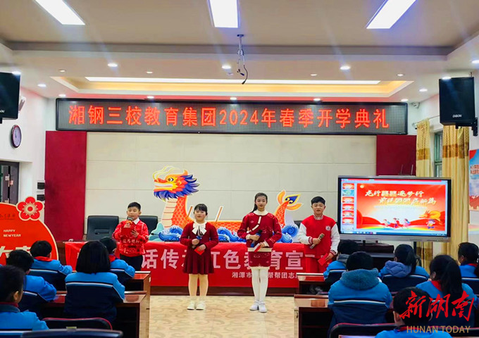 科教新报·新湖南客户端讯(通讯员 杨任珍)3月4日,湘潭市岳塘区湘钢三校教育集团2000余名师生在学校多媒体功能室和各班教室,举行了以“龙行龘龘逐梦行 前程朤朤启新篇 ”为主题的2024年上学期春季开学典礼暨表彰大会,开启新学年的美好篇章。