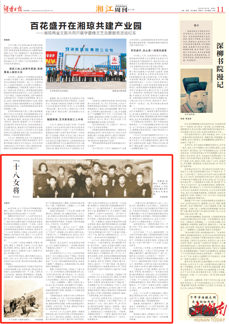 50多年前,在十万劳动大军修建的韶山灌区工程中,活跃着一群15至24岁的姑娘。她们就是当时闻名全省的“十八女将”。
