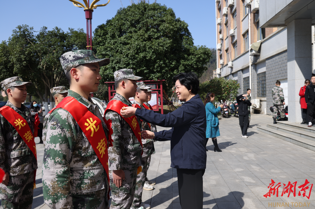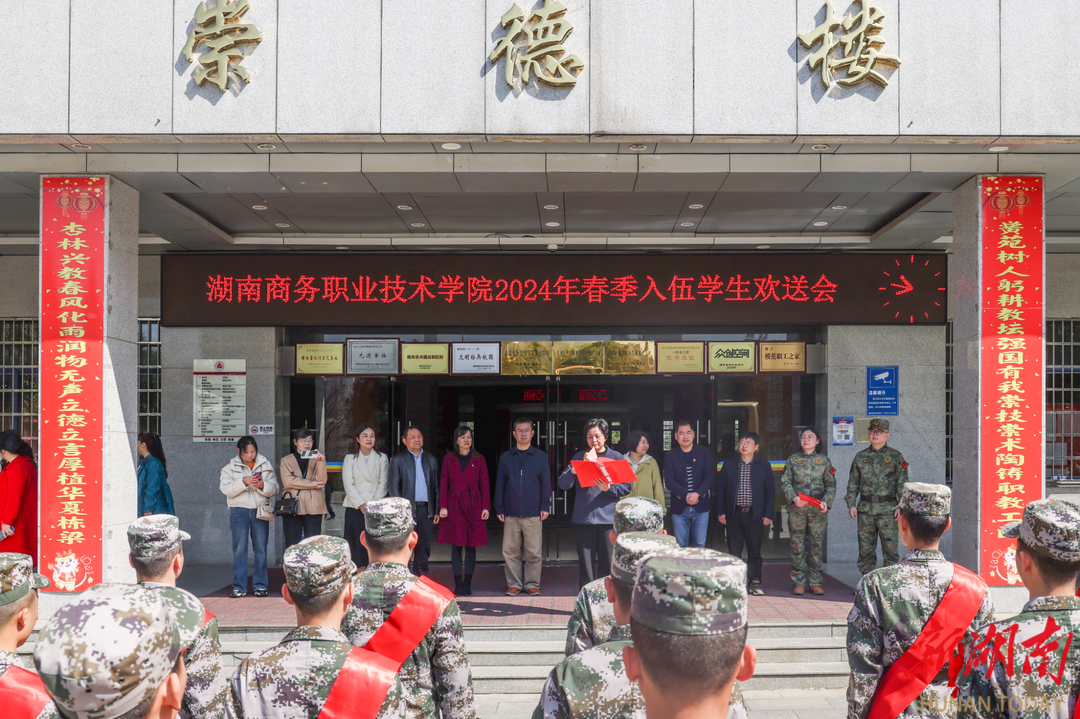 科教新报·新湖南客户端讯(通讯员 杨路平 李江冬)3月13日,湖南商务职院2024年春季大学生应征入伍欢送仪式在办公楼前举行。副院长禹明华宣读了21名入伍学生名单,院长李定珍为应征入伍学生佩带红花和绶带。