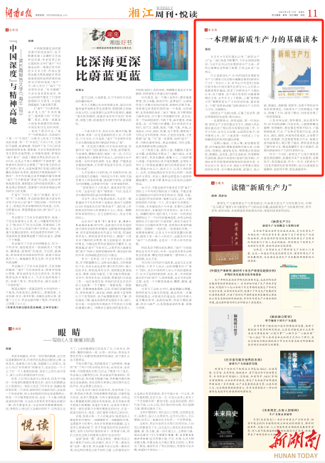 《新质生产力》的出版,汇集了经济界、理论界最新研究成果,特点突出。