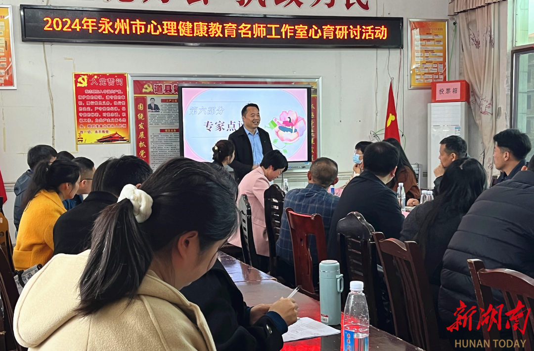 科教新报·新湖南客户端讯(通讯员 蒋正争 何江文 周江萍)3月19日,永州市唐添翼心理健康教育名师工作室在道县第六中学举行心育研讨活动。道县教育局体艺卫股、督导股相关负责人及永州工贸学校、道县一中、绍基学校、敦颐学校等学校30余名专兼职心理健康教育教师参加活动。