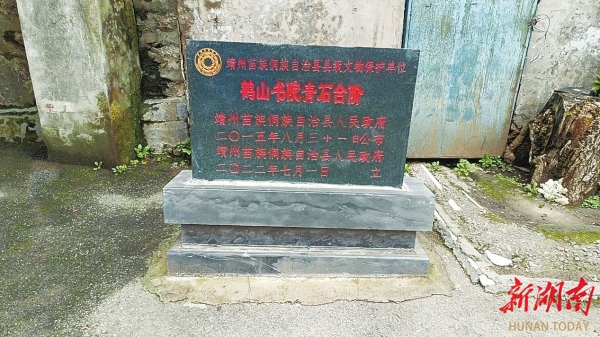 鹤山书院遗留的青石台阶文保碑。(作者供图)