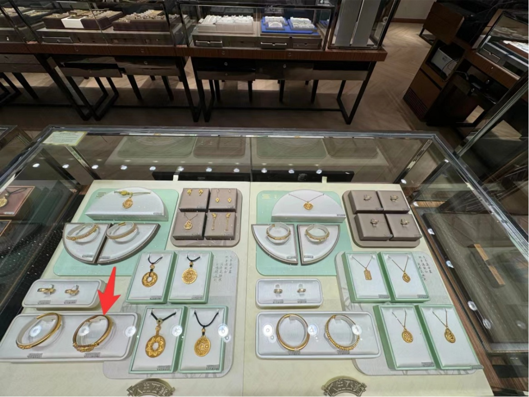 箭头所指为某金店最贵“一口价”手镯 记者 刘伟杰 摄