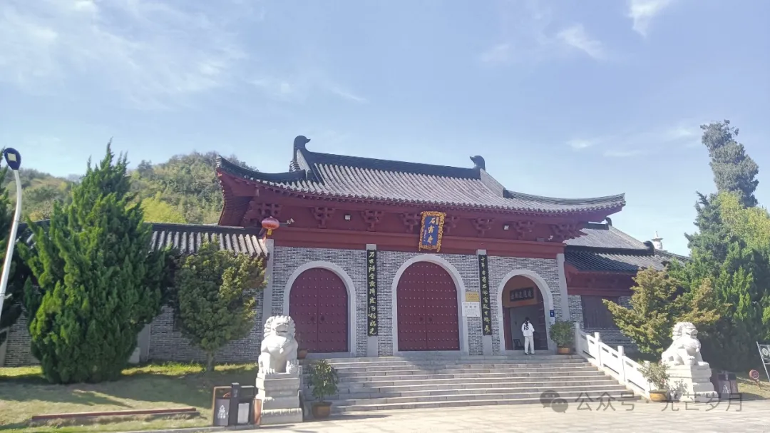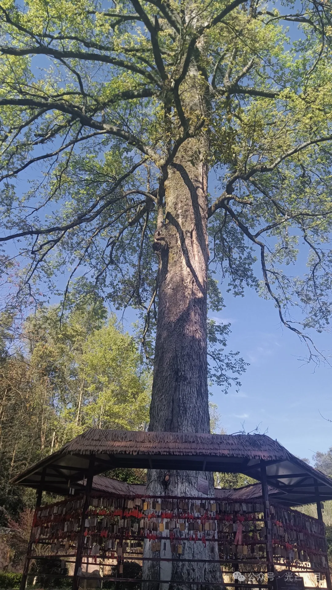 我们在这里还有意外惊喜的际遇,竟然邂逅了两棵千年古树。首先遇见的是寺前坪山门一颗绿意葱茏的千年古柏,高30米,胸径达80厘米,枝叶繁茂。接着在后山又见到了一颗高耸如云的千年枫树,雄伟壮丽,令人敬仰,两棵千年古树,千年芳华,拂暖心底,清风徐来。
