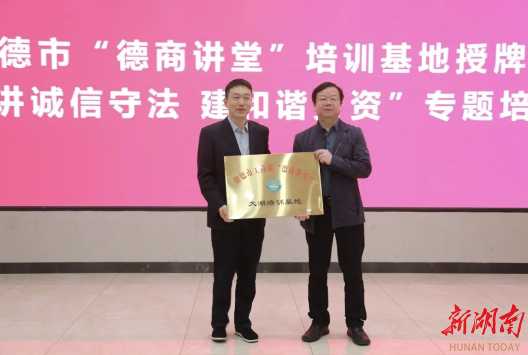 会议为常德市工商联“德商讲堂”首个培训基地——大湖培训基地授牌,阐明“德商讲堂”公益活动的重要性和必要性,对“德商讲堂”系列活动进行了总体安排部署。