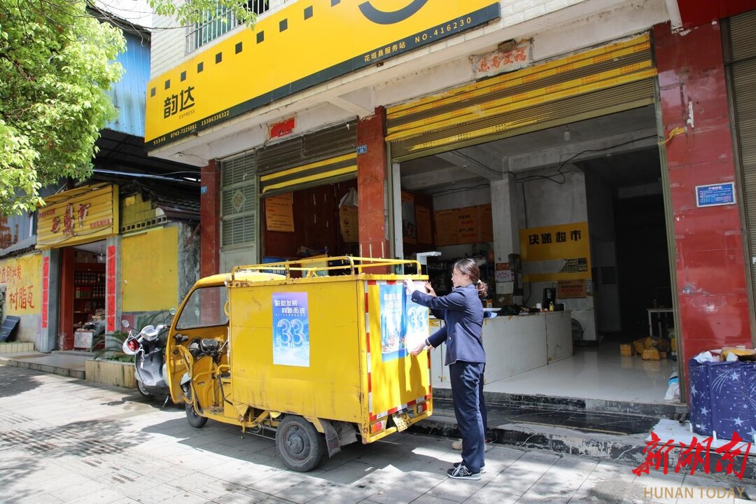 除了快递车贴上“税助发展 向新而进”主题海报,税务干部和快递公司工作人员将包裹分类,把送到各家各户的快递包裹也张贴上带有“政策找人”的个税汇算清缴知识、企业所得税相关优惠政策、专项附加扣除和“湘税通”小程序二维码等税费优惠政策宣传册。