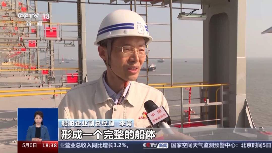 船舶企业副总经理 李勇:像这样的一条船的话,用钢量大概在5万多吨。因为现在都是分段建造法,首先就是要切钢板,做成一个个的分段,像这样一个船,我们大概要做成500多个分段,把分段送到涂装作业车间里进行分段涂装,再把这样的分段进行预合拢,合拢起来形成一个完整的船体,这是第二个阶段,在船坞里的建造阶段。第三个阶段就是在舾装码头的舾装调试阶段,经过舾装调试以后,这条船基本上就可以完工了。