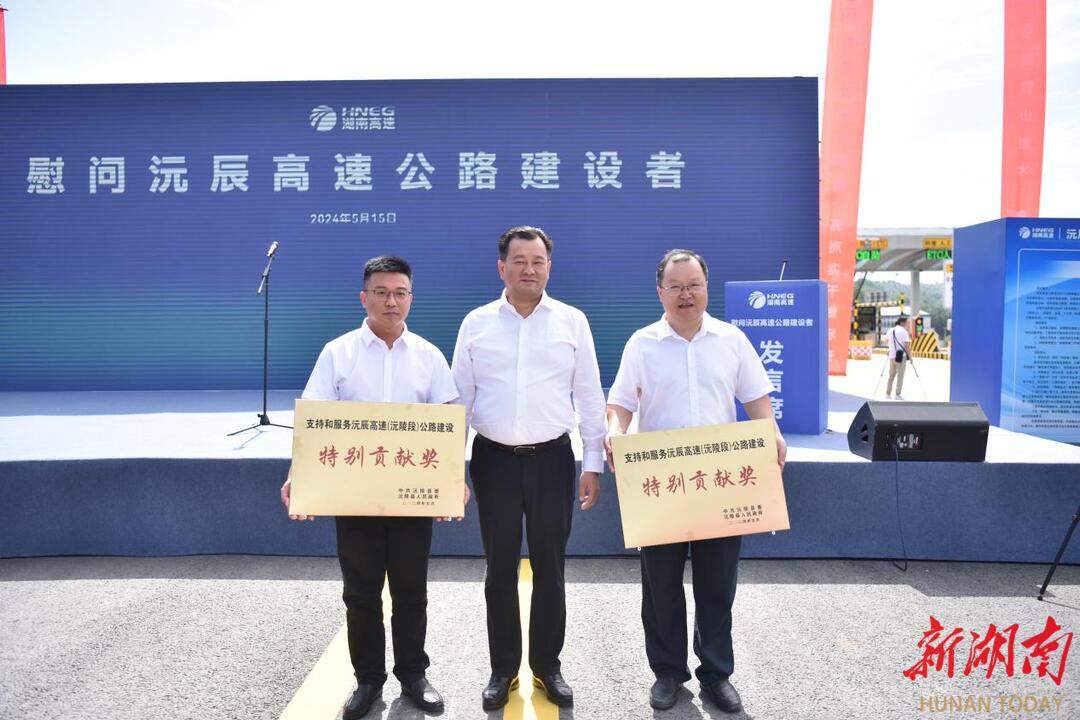 通车当日,沅陵县委、县政府一行对参与建设沅辰高速的建设者表示慰问,并现场授予河南省路桥建设集团有限公司“支持和服务沅辰高速(沅陵段)公路建设”特别贡献奖。