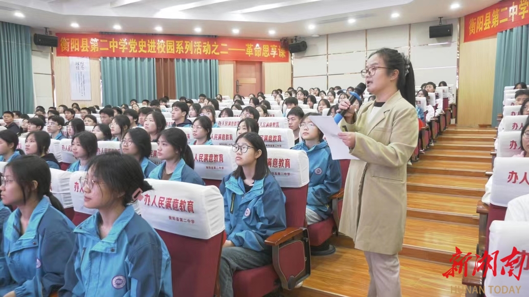 “音乐党史课”进学校。5月13日,衡阳县二中举办一堂别开生面的音乐党史课。突破传统党课形式,通过“史实讲述+红歌传唱”的教学,以红色经典歌曲串起党的光辉发展历程,以史串歌、以歌叙史。