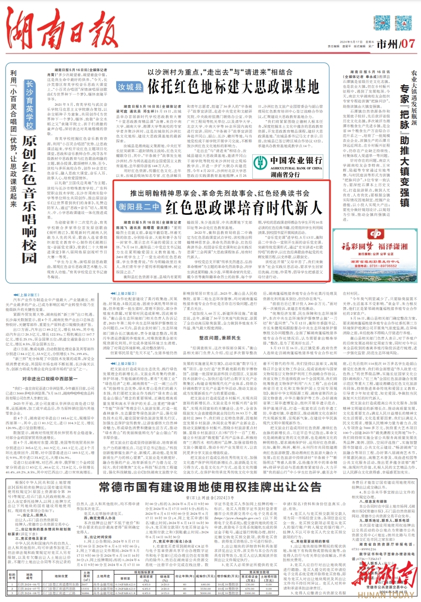 (原载于5月17日湖南日报7版)衡阳县二中红色思政课培育时代新人-----湖南日报数字报刊