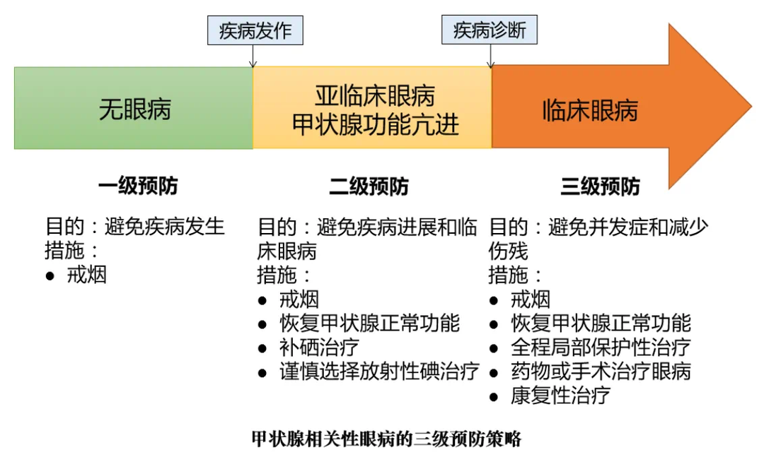 任何疾病的预防总要优先于治疗。甲状腺相关性眼病的预防包括:一级预防:病因预防;二级预防:临床前期预防;三级预防:临床预防。据悉,近年来,爱尔眼科由孙丰源教授、袁洪峰教授等30多位专家组成硕博医疗团队,注力于中国甲状腺相关眼病诊断和治疗。